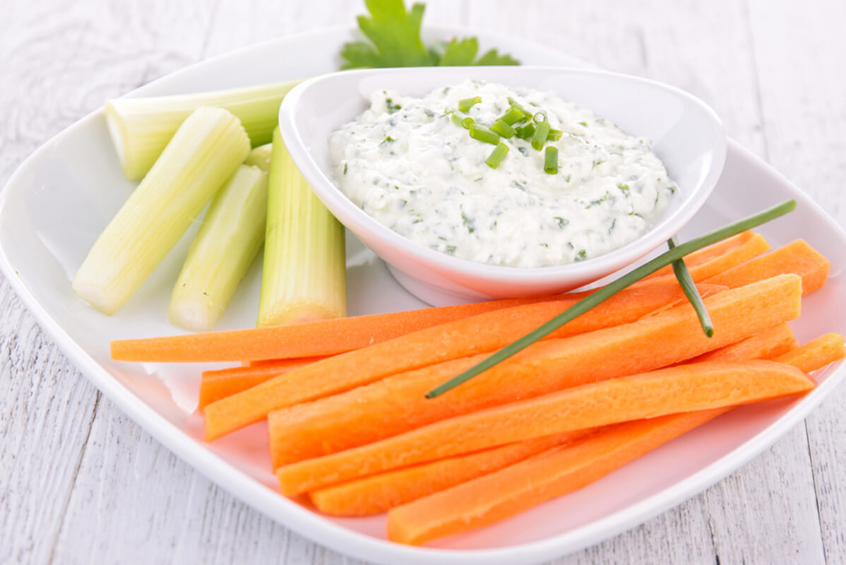 - Sirve en un plato las verduras y en un recipiente redondo la salsa que preparaste. Disfruta!